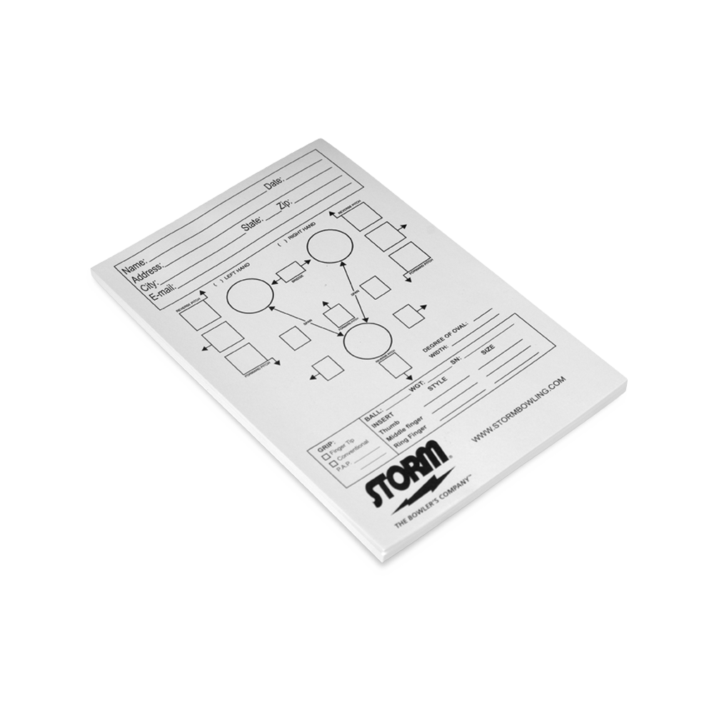 Organize your customers’ specs with the handy Storm drill sheet that is easy to read. Display your Storm pride every time you go to drill a new Storm ball! 50 sheets per pad.