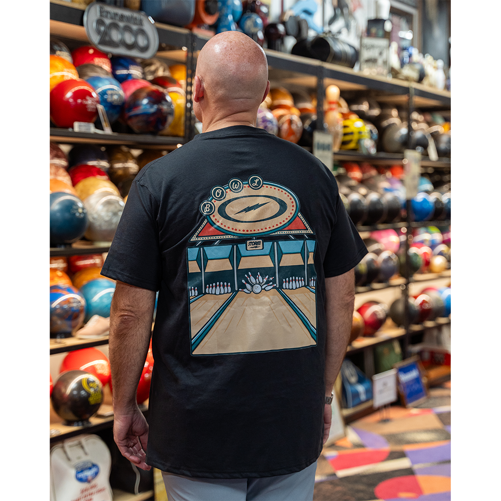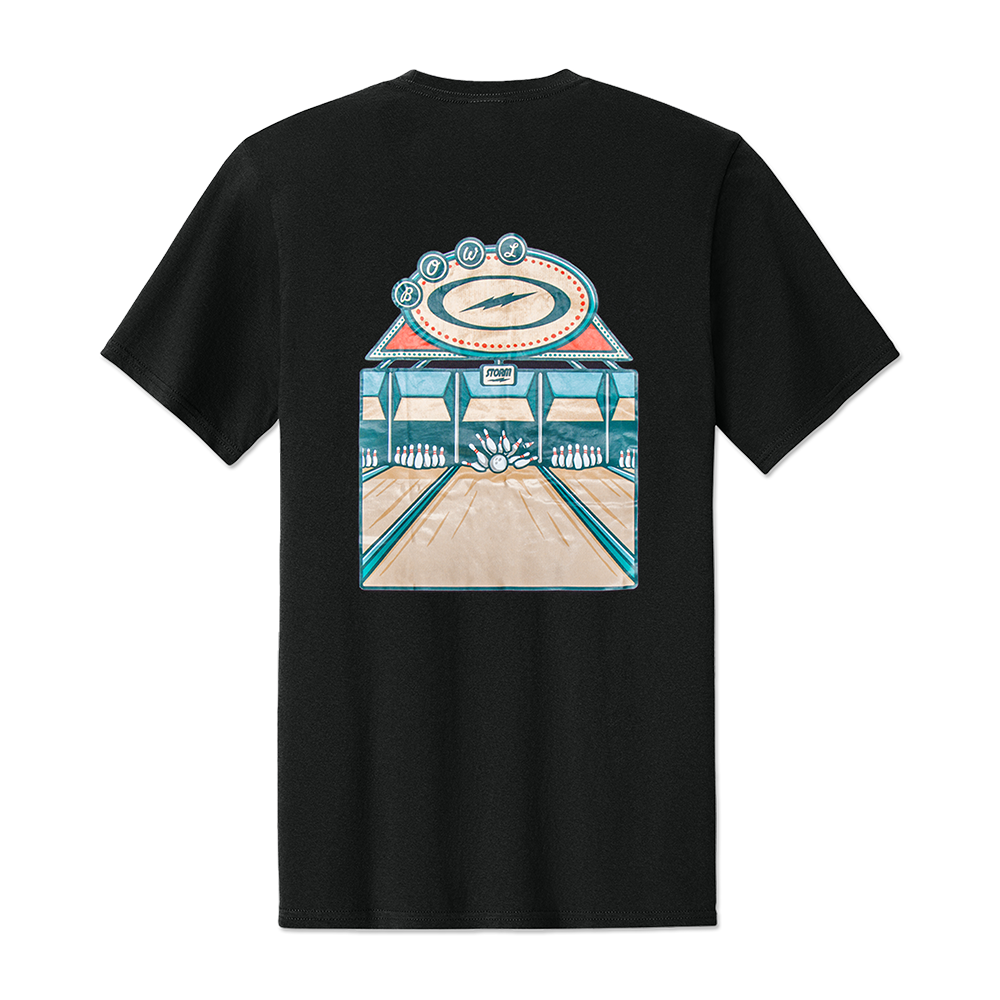 Classic comfort meets retro bowling vibes. This tee features a soft, breathable cotton/poly blend with a clean beige logo on the chest and a bold, vintage-inspired bowling alley graphic on the back. Whether you're spending the day at the lanes or just showing your love for the game, this shirt brings the energy and nostalgia in all the right ways.
